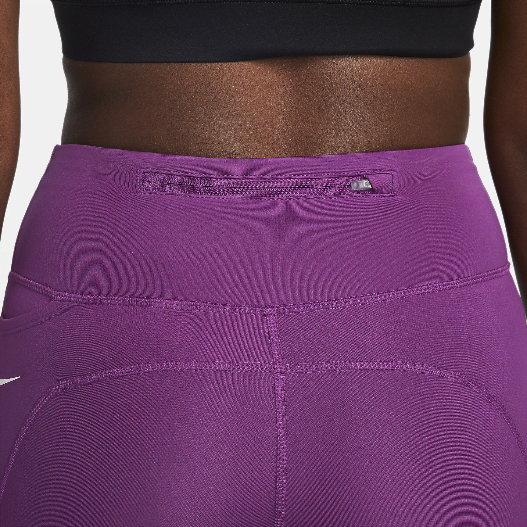 Keep running with the Epic Fast Mid-Rise Pocket Leggings. Stretchy polyester blend supports your moves, while mesh panels at the back of the knees give cool ventilation mile after mile. The waistband hits just below your navel and has a drawcord to let you dial in the perfect fit. Plus, multiple pockets keep all your small running essentials at your fingertips. This product is made with at least 50% recycled polyester fibers.