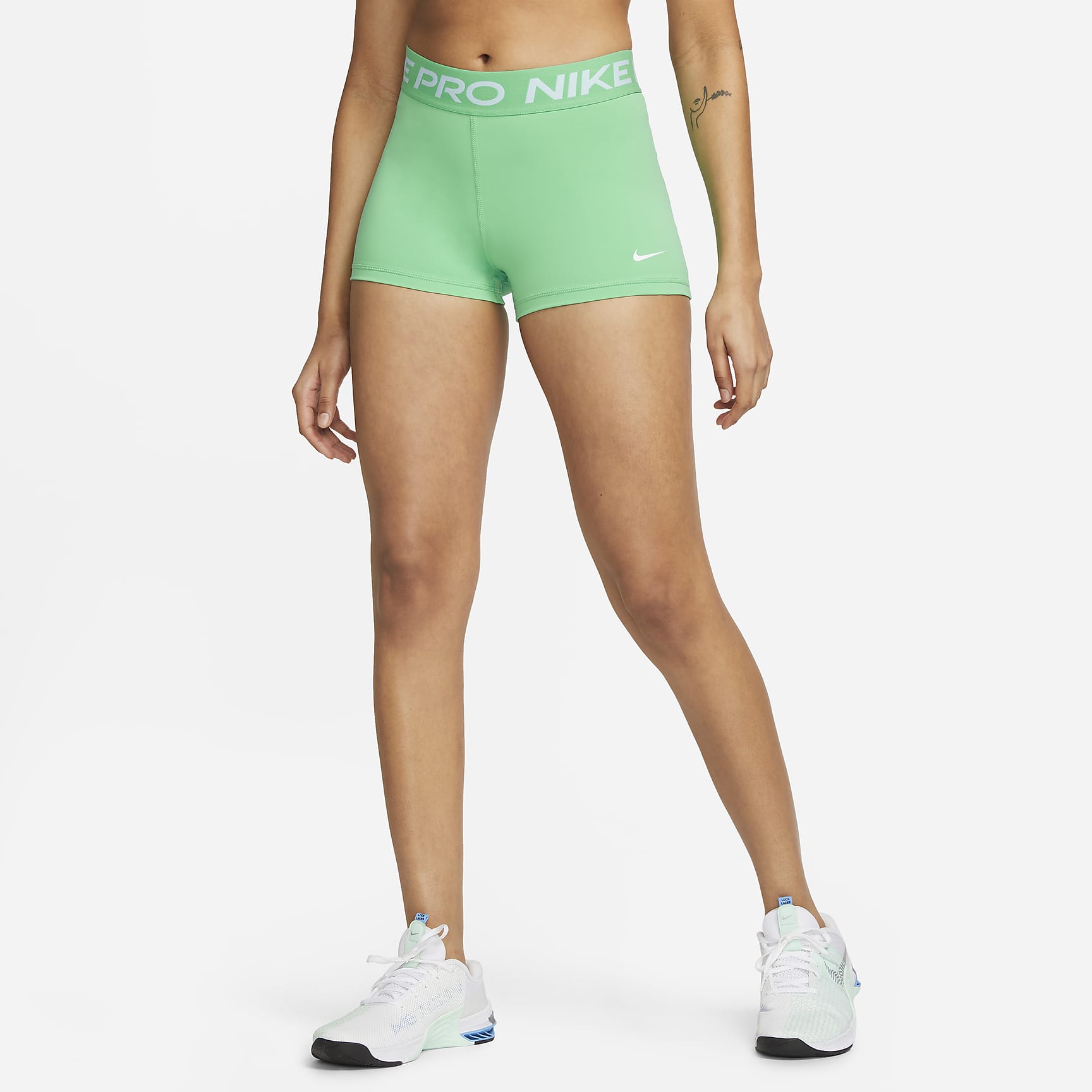 The Pro Shorts are made with stretchy, sleek and supportive fabric that wicks sweat to help you stay dry and comfortable during your workout. This product is made with at least 50% recycled polyester fibers.