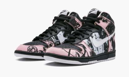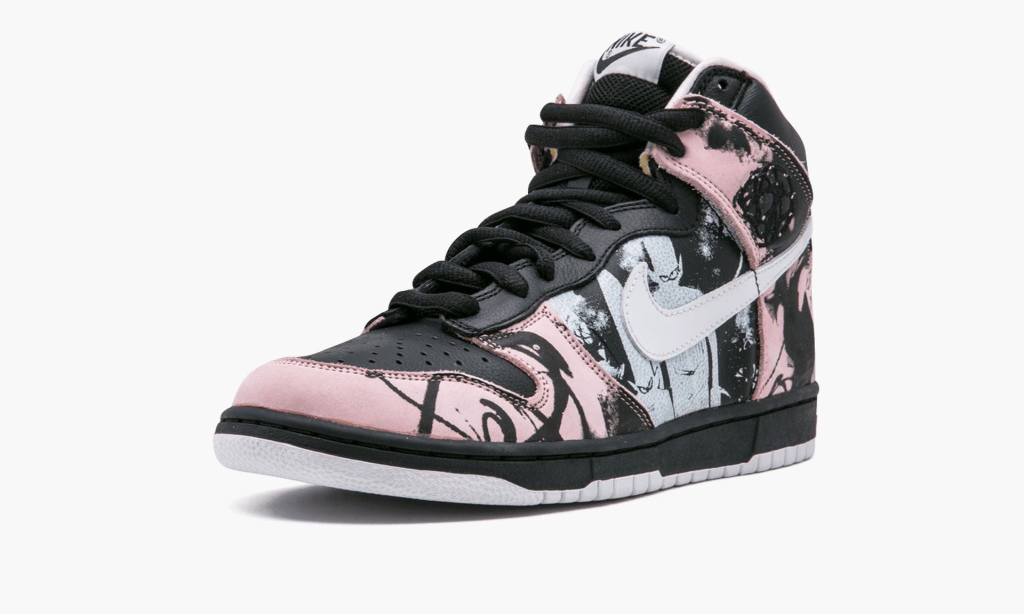 and MoWax artist Unkle collaborated to create these High Pro SB sneakers which dropped in 2004. The black, pink and white upper features artwork by famed graffiti artist Futura in a leather combo.