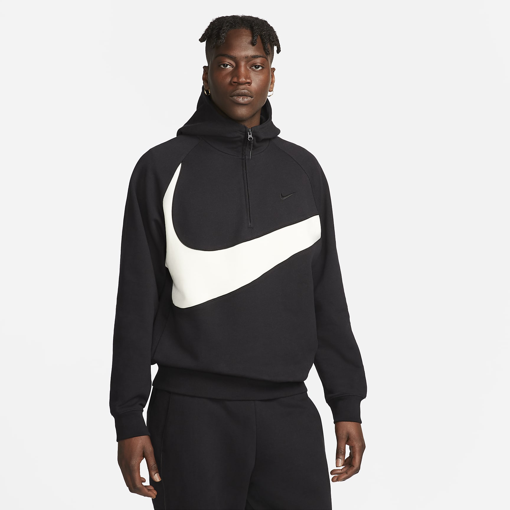 Made with soft fleece in a roomy fit for casual comfort, this Swoosh 1/2-zip hoodie brings the bold vibes to any outfit. Pair it up with our Swoosh fleece pants for a uniform look, heavy on the Swoosh.